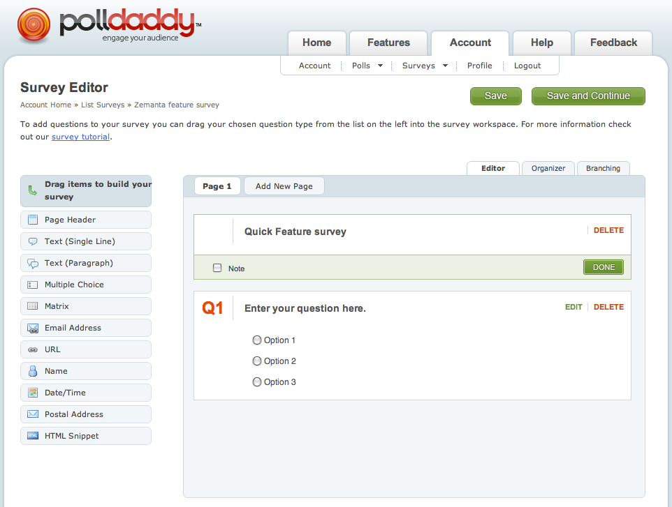 PollDaddy form editor in action