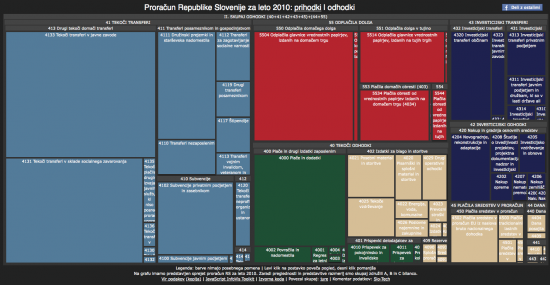That is what I’m trying to solve with this Visualization of budget of Slovenia for 2010. Show where the money is going as well as tell a story of a country that’s so much in debt that it would be a reason for panic if it happened to a person or a company. Yet we don’t seem to talk or address the issue that we’re 3.6 billion EUR short of making budget and that we have to borrow more money to pay our old debts.
